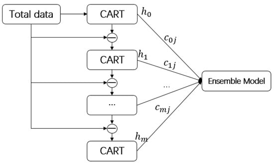 In this way, we obtain for each data cluster, and we can have all the predicted values by using Equation (6). In the verification process, we first calculated the prediction results of each sample in the verification set using the LSTM and GBDT models, respectively. Then, we classified each data sample into one of the K data clusters. Finally, we found the corresponding weight coefficient to obtain the final predicted value.