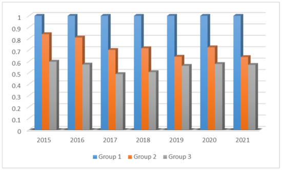 In the meta-frontier analysis, this study employs efficiency scores under the CRS assumption, given that the efficiency score under CRS represents technical efficiency (TE). This score is a product of pure technical efficiency (PTE, which is also the efficiency score under the VRS assumption) and scale efficiency (SE). Consequently, TE can be considered as an overall efficiency that integrates both PTE and SE. Our research aim is to assess the overall efficiency of DMUs in all aspects (both technical and scale), making TE more pertinent. In contrast, the efficiency score obtained under the VRS assumption signifies pure technical efficiency, which holds relatively lesser significance when evaluating the comprehensive level of DMUs.