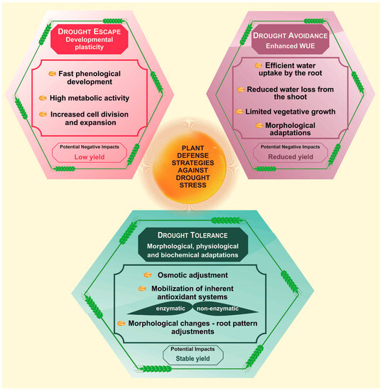 In addition, the categorization of plants into drought-escape or drought-avoidance types is not entirely precise in practice because they occur at different times. Drought escape happens prior to a drought event, while drought avoidance occurs during or after a drought period. Researchers and breeders should actively pursue the development of wheat cultivars with a combination of strategies to increase their resilience to drought stress in changing environments.