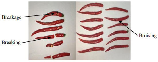 Wang, G.; He, B.; Han, D.; Zhang, H.; Wang, X.; Chen, Y.; Chen, X.; Zhao, R.; Li, G. Investigation of Collision Damage Mechanisms and Reduction Methods for Pod Pepper. Agriculture 2024, 14, 117. https://doi.org/10.3390/agriculture14010117