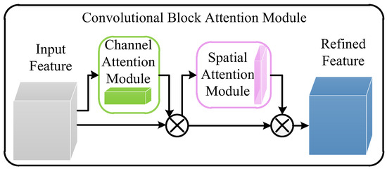 Compared with SE-Net, which only focuses on the importance of channel pixels, CBAM is a lightweight attention model that comprehensively considers the differences in importance between different channel pixels and the same channel pixels at different locations. It is a simple and efficient attention mechanism design, with minimum computational consumption, and it can be seamlessly integrated with convolutional networks and used for end-to-end training, as shown in Figure 8.