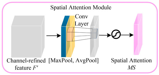 Figure 10 represents the spatial attention vector, which is obtained by operating along the channel direction to obtain the feature vector and then multiplied by the input feature. The expression of the spatial attention mechanism is shown in Formula (4):