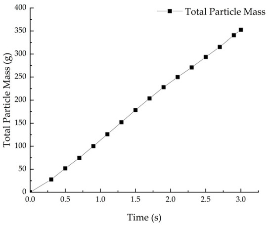 EDEM 2022 software employs the Grid Bin Group function to partition the sampling plate and collect cotton samples within a specified region. This facilitates the computation of the cumulative weight of lint particles in each divided area. Consequently, it becomes possible to ascertain the weight of lint particles on the sampling plate at various time intervals during the collection process. Figure 13 illustrates the variations in lint weight collection within a 3 s timeframe.