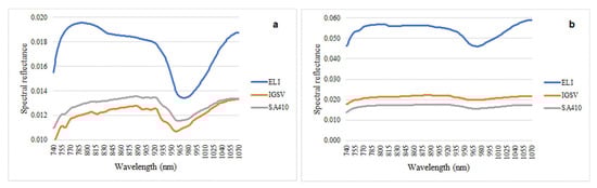 Average curves of spectral reflectance of apical leaf at the stage of 5th (a) and 12fth (b) true-leaf in control (Elisir) and mutant lines (IGSV and SA410).