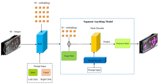 It is a tedious and difficult task for researchers to make the ground truth of instance segmentation, which has persistently hindered the development of instance segmentation [24]. In traditional manual annotation methods, researchers often use the method of clicking around the pigs multiple times to draw polygons for mask labels. When there are too many objects in the image, this type of annotation process is very time-consuming and labor-intensive. With its strong ability to identify masks of natural objects, SAM can segment objects easily; that means this model can rapidly generate numerous points to outline the shape of anything, even in complicated environments. The details of SAI are shown in Figure 2.
