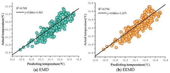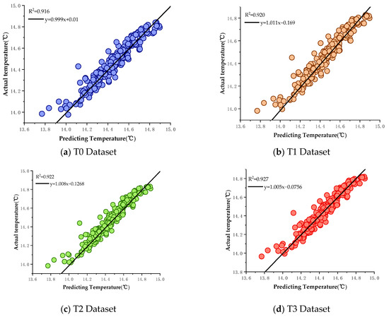 As shown in Table 3, when the training dataset was collected for 20 days, 15 days, and 10 days, there was no significant change in the model’s prediction accuracy. The RMSE values were recorded as 0.055 °C, 0.054 °C, 0.058 °C, while the corresponding R2 values were 0.944, 0.944, and 0.937, respectively.