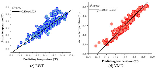 Comparison of R2 values based on different decomposition modes: (a) model based on EMD decomposition; (b) model based on EEMD decomposition; (c) model based on EWT decomposition; (d) model based on VMD decomposition.