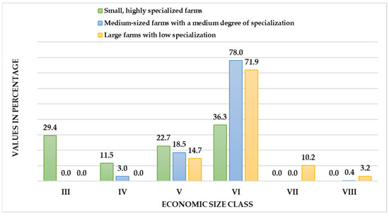 Distribution of observed companies by economic size class and farm profile (2015–2020, values in %) (source: elaboration of FADN data).