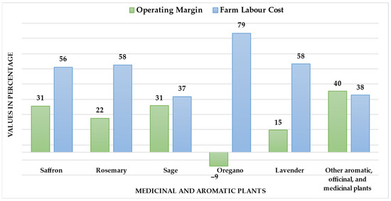 In recent years, the primary sector in Italy and elsewhere has been profoundly affected by climate change and a deep economic crisis, mainly linked to stagnating prices and rising production costs. Because of this situation, we are witnessing renewed interest in alternative agricultural productions, which are characterized by their resilience and sustainability, including medicinal and aromatic plants (MAPs). This sector is characterized by a certain heterogeneity due to the great variety of species and their wide range of uses. Although these characteristics contribute to the sector’s economic success, they also hinder its study due to commodity complexity and limited data availability. At the farm level, the situation is complicated by the fact that MAP cultivation is often embedded in complex cropping systems, and more rarely, is practiced exclusively or predominantly. In light of these considerations, we concentrated solely on the agricultural phase of the supply chain, using data available in the Farm Accountancy Data Network. We aimed to examine the main structural characteristics and economic outcomes of Italian farms that grow MAP, as well as the profitability of some of the species. To ensure accurate species classification, only MAPs exclusively designated for botanical use in the Italian National List were considered. The analysis of farm economic performance indicators (gross output, variable costs, gross margins, etc.) focused mainly on the species most represented in the sample: saffron, rosemary, lavender, oregano, and sage. The results indicate that the total gross output and gross margin show the best performance in the case of saffron (66,200 and 57,600 EUR/ha, respectively) and rosemary (27,500 and 22,000 EUR/ha, respectively). However, for saffron, the biggest cost concerns propagation (purchase of bulbs), amounting to 50% of the variable costs, whereas fertilization ones are particularly high for sage and rosemary.