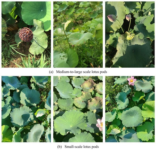Common vegetables and fruits (e.g., lettuces, strawberries, cherry tomatoes, kiwifruits, etc.) are often grown in a relatively standardized environment, and the object individual’s scale distribution in the image is relatively similar. However, lotus pods grow in a rather unstructured environment. Their colors are similar to those of surrounding objects (