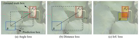 The loss function is particularly important for object detection models as an evaluation index to measure the difference between the model’s predicted results and real values. YOLOv5 uses CIoU as the loss function of bounding box regression. It considers the central point distance, overlap area, and box’s aspect ratio. However, CIoU does not take into account the direction relationship between the prediction and the ground truth, which may lead to less effective and slower model convergence. As a new loss function, SIoU [