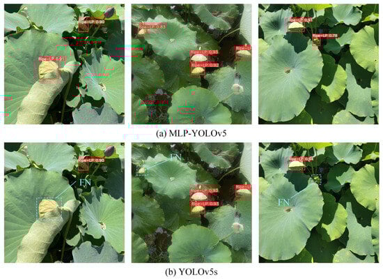 This study established the MLP-YOLOV5 model based on the multi-scale characteristics of the lotus pods. The above experimental results show that the model effectively improved the identification accuracy of lotus objects of different scales and achieved lightweight. The model’s performance has advantages compared with other mainstream algorithms.