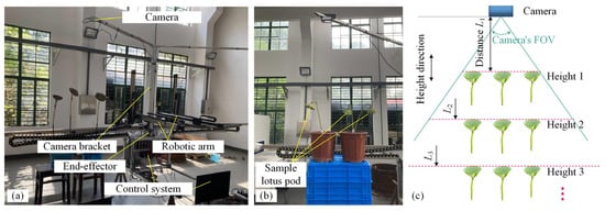 Figure 1a), low working efficiency, and heavy labor intensity. In recent years, the intensification of population ageing has highlighted an increasing harvesting labor shortage. As a result, it directly impacted the lotus seed industry. Hence, it is urgent to research automatic lotus pod harvesting technology.
