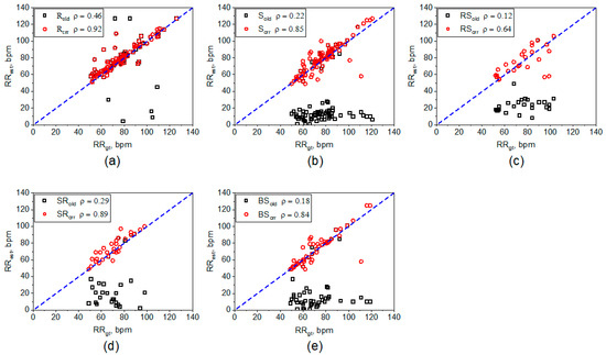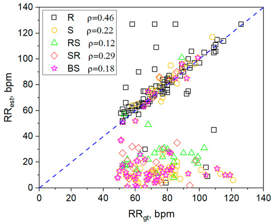 where RRest and RRgt denote the estimated respiration rate and ground truth respiration rate, bpm, cov(RRest, RRgt) is the covariance, and and are the standard deviation of estimated and ground truth respiration rate, and N is the total number of samples.