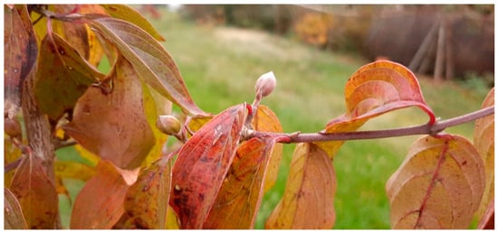 - Vareed, S.K.; Reddy, M.K.; Schutzki, R.E.; Nair, M.G. Anthocyanins in Cornus Alternifolia, Cornus Controversa, Cornus Kousa and Cornus Florida Fruits with Health Benefits. Life Sci. 2006, 78, 777–784. [Google Scholar] [CrossRef] [PubMed]