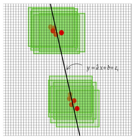 Based on the above description, the Hough transform and least squares method were the most commonly used path fitting methods in crop row identification. Among them, Hough processing easily extracts feature edge lines and then obtains the crop lines. The least squares rule is a statistical method of regression analysis which can fit a navigation path with acceptable accuracy. Although both methods can detect row guide lines, different environmental conditions, such as variations in color, brightness, saturation, contrast, reflection, shadow, occlusion, and noise in the same scene, can lead to the failure of guidance line extraction [,]. Secondly, differences in wind intensity in the field will also cause plant movement, which will blur the plant image and cause inaccurate crop center point detection [,,].