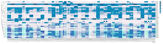 Heatmap of the 30 highly abundant OTUs characterizing community differences in each sample. Each row represents a different OTU, and the abscissa is the name of a different sample repetition.