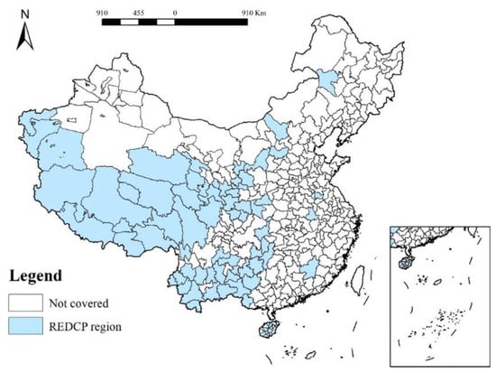 REDCP, a dummy variable showing whether or not a prefecture-level city has applied REDCP in a particular year, is the core independent variable. According to Zeng [], REDCP is defined as 1 when 80% or more of the counties in a municipality implemented REDCP in a certain year; otherwise, it is regarded as 0.