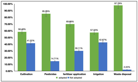 Against the backdrop of the severe challenges of global climate change and the urgent need for sustainable agricultural development, the adoption and promotion of green production technologies have become key to achieving sustainable agricultural development and environmental protection [1]. The adoption of green production technology by farmers (GTA, hereinafter referred to as GTA) is directly related to the effectiveness of agricultural green development [2,3,4]. GTA refers to collecting various agricultural skills, tools, and rule systems adopted in the farm production process to produce high-quality agricultural products while reducing pollution, such as precision fertilization, water-saving irrigation, straw-returning technology, etc. [5,6]. GTA is regarded as an important strategy to address agricultural environmental pollution, ensure the quality and safety of agricultural products, and achieve sustainable agricultural development [7].