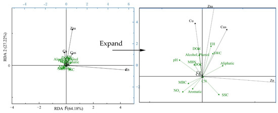 Redundancy analysis of soil properties and heavy metal residues in soil and grains.