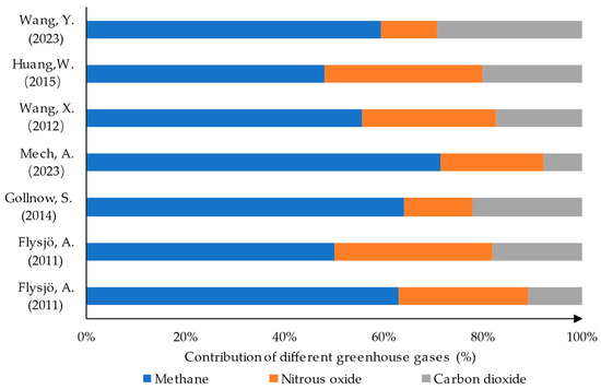 Contributions of different greenhouse gasses to the system in different studies [17,18,19,20,21].