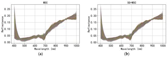Figure 8 visualizes the spectral curves after these four preprocessing methods, supporting further analysis and comparison.
