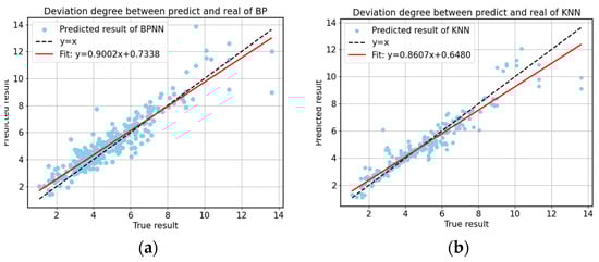 Figure 11 shows the deviation of the actual polyphenol values from the predicted values under different prediction models. The closer the regression line is to the line, the better the model’s prediction performance.