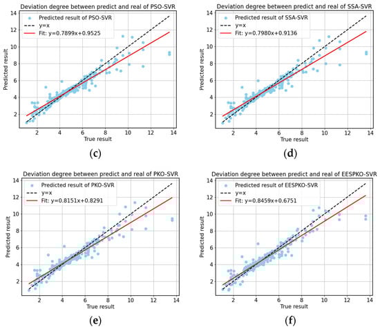 44] to further improve the global search capability and convergence speed of the PKO. Compared with PSO-SVR and SSA-SVR, the enhanced PKO-SVR not only converges in fewer iterations but also avoids local optima more effectively, which significantly improves the prediction accuracy and optimization efficiency of the SVR model. The advantage of the enhanced PKO-SVR lies in the incorporation of the EES, which allows the algorithm to reduce optimization time and improve convergence speed without sacrificing global search ability.