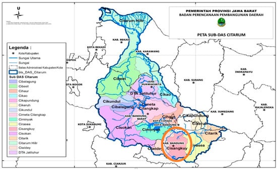 Based on Decree Number 30 of 2018 issued by the Ministry of Environment and Forestry, the Citarum Watershed covers an area of approximately 682,227 hectares. The flow of the Citarum River is utilized by the Saguling, Cirata, and Ir. H. Juanda (Jatiluhur) Reservoirs for various development activities, including as a source of drinking water, irrigation, power generation, and industrial water. Additionally, it serves as a waste reservoir for various domestic and non-domestic activities within the watershed [1,2].