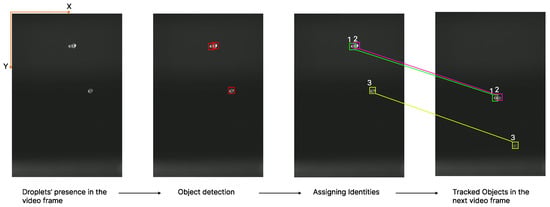 IoU Calculation: For each detected droplet in the ground truth, the IoU with the corresponding detected droplet in the tracking data was calculated. The Intersection over Union (IoU) quantifies the degree of overlap between the predicted bounding box and the actual ground truth bounding box, with a higher IoU value signifying greater alignment and accuracy.