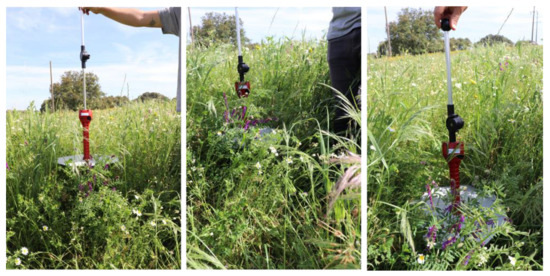 The application of new technologies to grassland farming is a complex challenge, especially due to the greater diversity within grassland, in terms of the soil and pasture spatial variation, and the highly temporal dynamics of grass species [22]. Each botanical species, with specific characteristics (morphology, prostrate or erect size, moisture content, proportion of stems and leaves, proportion of protein and fiber, etc.), is measured differently by each sensor, depending on its operating principle (eminently mechanical, as in the case of the RPM; electrical, as in the case of the Grassmaster; optical; or other) and variably over time. For this reason, the diversity of Mediterranean pastures, with varying proportions over time, is a challenge for the performance of each sensor.