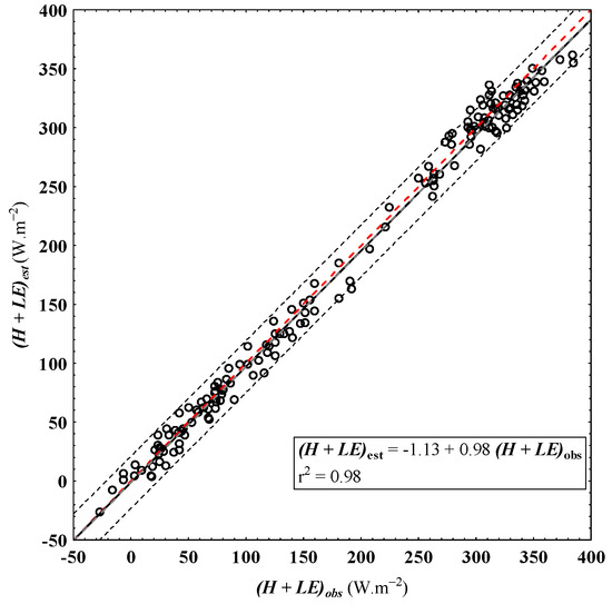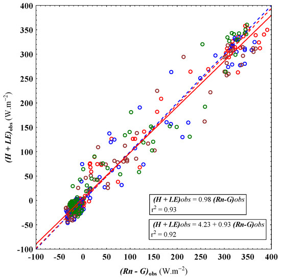 Note that, since the energy balance at the canopy level only accounts for the fluxes measured just above the canopy, the contribution of soil heat flux is negligible and can be disregarded in this calculation.