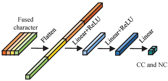 This network module primarily comprises linear components. Initially, it transforms two-dimensional integrated features into one-dimensional features. Subsequently, it performs nonlinear mapping via two dense modules. Finally, it employs a linear module to estimate the CC and NC of AMM leaves. The structure and specific parameters of the MLP simultaneous estimation network module are provided in Appendix B.4.