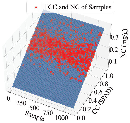 Plant leaves are the primary site of photosynthesis [8]. Chlorophyll, as a photosynthetic pigment in higher plants, may directly reflect the strength of photosynthesis and health of the plant [9,10,11,12]. It is an important physiological indicator for evaluating plant growth and is closely related to crop yield and quality [13,14,15]. Nitrogen is an essential element for plant growth and quality [16]. It provides important support for plant photosynthesis, protein synthesis, carbohydrate synthesis, and carbon–nitrogen metabolism, greatly affecting plant growth, yield, and quality [17,18,19]. The timely determination of plant chlorophyll content (CC) and nitrogen content (NC), followed by the application of an appropriate amount of nitrogen fertilizer at the right time, is extremely important for achieving high yields with less nitrogen fertilizer [20]. Therefore, the rapid and precise monitoring of CC and NC in plant leaves is key to accurately assessing crop growth and health status.