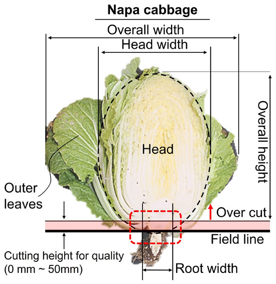 Napa cabbage (Brassica rapa L. ssp. Pekinensis) is a significant crop, particularly in East Asia, where it is widely cultivated in countries such as China, Japan, and the Republic of Korea [1]. In the Republic of Korea, Napa cabbage is a crucial ingredient in Kimchi, a staple food in the local diet [2]. Between 2012 and 2017, the production volume increased from 2 million tons on 295.24 km² to 2.4 million tons on 324.16 km², reflecting growth rates of approximately 10% and 20%, respectively. Napa cabbage cultivation represents 68% of the total area dedicated to leaf-stalk vegetables in Korea. Despite its importance, mechanization for Napa cabbage cultivation remains limited, particularly for labor-intensive harvesting operations [3].