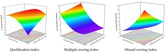 After removing the insignificant regression terms, the accuracy of the regression model’s predictions is not affected. The regression models for the qualification index, multiple sowing index, and missed sowing index can be expressed as follows: