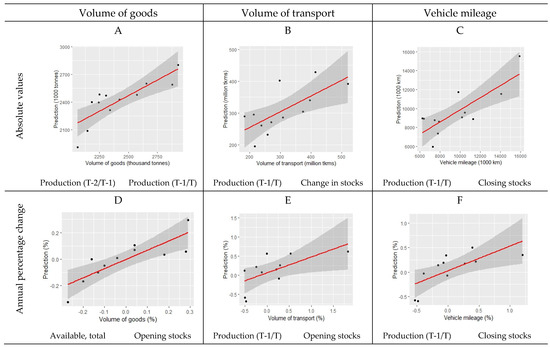 | Absolute data | Volume of goods (T) | Adjusted R2 | 0.067 | −0.072 | 0.514 | −0.063 | − | −0.072 | −0.092 | −0.095 | −0.061 | 0.053 | 0.266 | 0.310 |