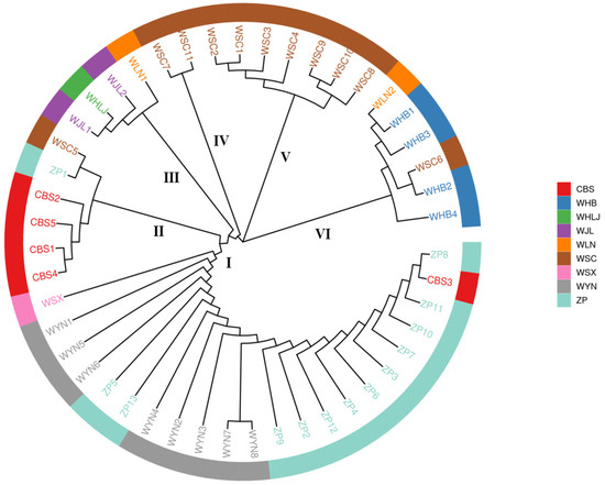 The wild strains exhibited relatively high genetic diversity, with strains from similar geographical regions clustering together. For instance, wild strains from Liaoning, Jilin, and Heilongjiang grouped in Cluster III, while those from Sichuan were predominantly found in Clusters IV and V, and those from Hubei in Cluster VI.