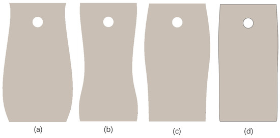 Front view of common shovel tip and bionic shovel tip: (a) bionic subsoiling shovel 1; (b) bionic subsoiling shovel 2; (c) bionic subsoiling shovel 3; (d) bionic subsoiling shovel 4.