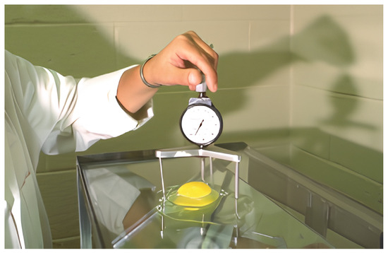 The albumen, initially clear and viscous, gradually becomes more watery due to the breakdown of proteins, which alters its structural integrity [36,37]. In [38], the author observed that the viscosity of both thin and thick albumen decreased with increasing temperature and time from 5 to 30 °C at a shear rate of 34–600 s−1. Additionally, at 20 °C and a shear rate of 34.2 s−1, the viscosity of the thick portion was 160 cp, which was 40 times higher than that of the thin portion due to high-molecular-weight complexes [38]. Similarly, the viscosity of the yolk was also influenced by storage temperature and duration. In [39], yolk viscosity was measured over 8 weeks at temperatures ranging from 4 to 16 °C, and it was found that at a shear rate of 3.4 s−1, the viscosity of the fresh yolk was 2023 mPa·s. By week 8, at 16 °C, the yolk viscosity had decreased to 425 mPa·s. Based on this research, it is evident that viscosity, like the other physicochemical changes, serves as a critical physical indicator for evaluating egg quality.
