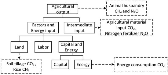However, these methods used alone are unable to clearly identify the specific transmission process and key emission reduction pathways of emission reduction measures to promote inter-industry carbon emission reduction. Wood and Lenzen designed a structural path decomposition (SPD) model based on the integration of the advantages of SPA and SDA, which can systematically analyze the transmission process and drivers of emission reduction measures based on the industrial chain perspective [20]. However, the existing literature has not coupled the CGE model with SPD to explore the mechanism of macro emission reduction measures to promote the reduction in agricultural GHG emissions.