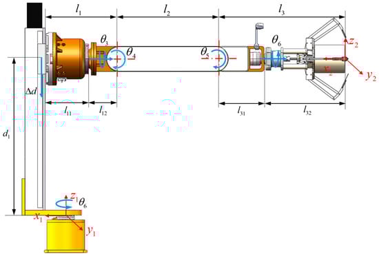 Substituting the manipulator parameter data into Equation (2), Equations (3)–(8) are obtained.