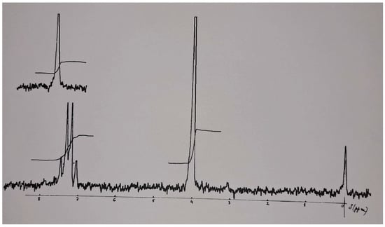 The analyzed samples used in the experimental determinations had an advanced purity (≥98.5%). Figure 8 displays the 1H-NMR spectrum for Dicamba, providing insights into its chemical structure and characteristics. The analysis of the Dicamba spectrum revealed key characteristics, as summarized in Table 8.