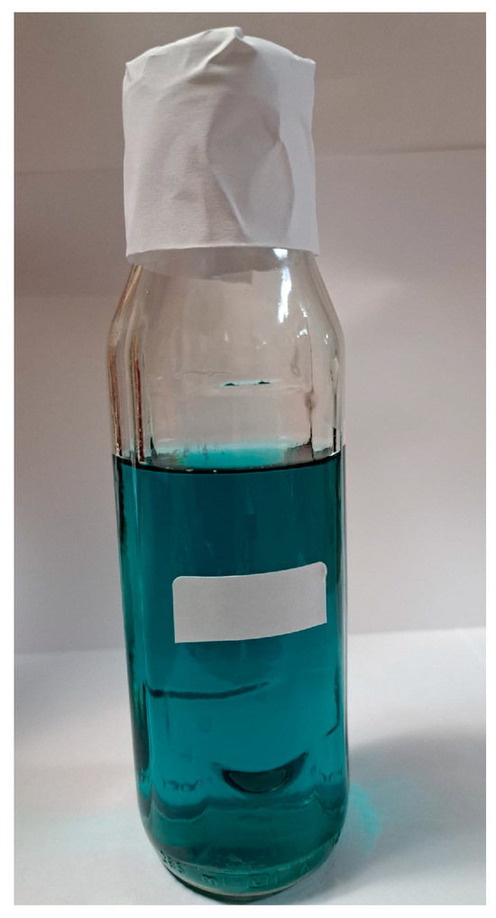 Next, 0.001 kg of surfactant (polyvinyl alcohol) and 0.0001 kg of phenolphthalein were added to the fertilizer solution. Finally, 100 L of liquid foliar fertilizer was obtained in the form of a homogeneous solution, green-blue in colour, having a pH = 5.5–6.5 and D = 1.1–1.115.