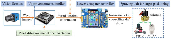 - Raja, R.; Slaughter, D.C.; Fennimore, S.A.; Siemens, M.C. Real-time control of high-resolution micro-jet sprayer integrated with machine vision for precision weed control. Biosyst. Eng. 2023, 228, 31–48. [Google Scholar] [CrossRef]