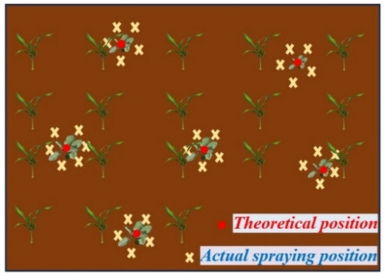 | Leakage spraying rate (LSR) | The proportion of unsprayed weed targets (n2 + n3 + n4) relative to the total number of weeds (N) within the experimental area. | |