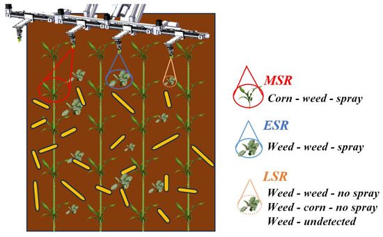| Relative spraying rate (RSR) | The proportion of sprayed targets (n1 + n1′) relative to the total number of targets identified as weeds (n + n3′) within the experimental area. | |
