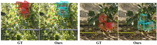 Finally, as shown in Figure 9, our analysis found that our system encountered limitations under severe occlusion conditions. The dataset included instances where leaves and branches significantly concealed apples. Due to the absence of a specialized framework to address severe occlusions, our method had difficulty in instances of severe occlusion. To address this limitation, future research will aim to improve the model to be robust even under severe occlusion conditions, leveraging the visibility of our dataset for evaluation. This improvement aims to guarantee robust performance with the complex scenes of real-world scenarios.