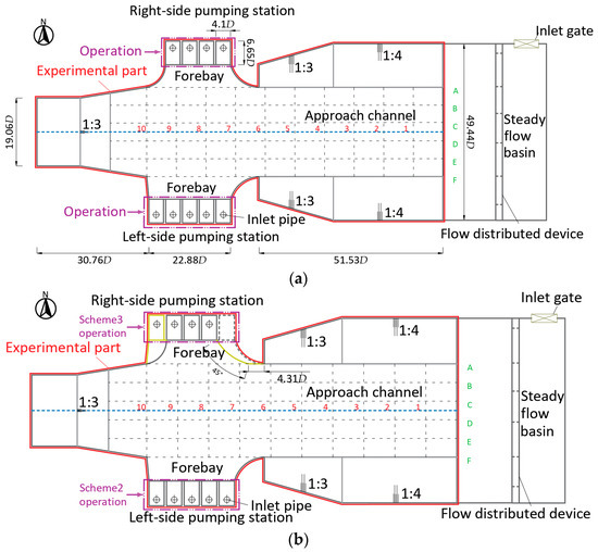 - Chen, Q. Study of Flow Improvement Measures in the Forebay of a Lateral Intake Pumping Station. Master’s Thesis, Yangzhou University, Yangzhou, China, 2019. [Google Scholar] [CrossRef]