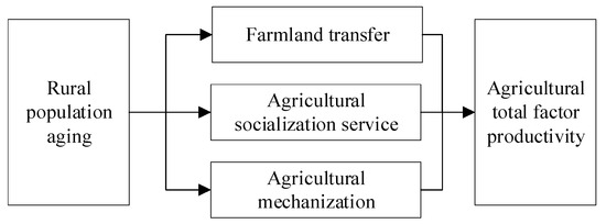 Based on the above assumptions, this paper constructs a theoretical analysis framework diagram, as shown in Figure 1. That is, the aging of the rural population can affect the ATFP through farmland transfer, agricultural socialization services and agricultural machinery.